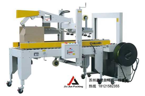 自動(dòng)折蓋封箱打包機(jī),機(jī)器尺寸L2460×W1420×H1650,機(jī)器輸送速度6箱每分鐘。嘉俊奧特威除了打包機(jī),還有纏繞機(jī)封箱機(jī)等機(jī)器生產(chǎn)出售。